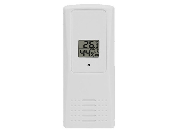- Dimensions du thermomètre-hygromètre (L x l x h) : 44 x 110 x 20 mm, poids : 52 g (sans piles)