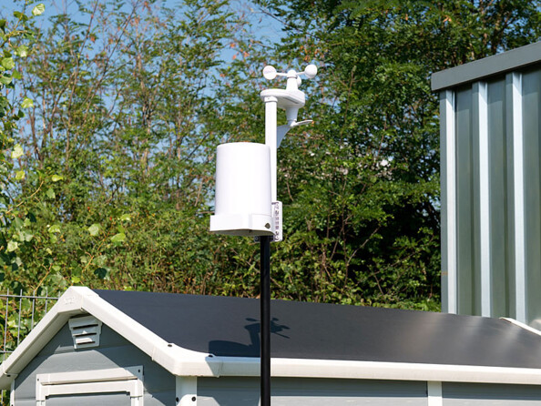 - Capteurs de température, d'humidité, de pluie et de vent, chacun avec connexion sans fil à la station, portée jusqu'à 100 m