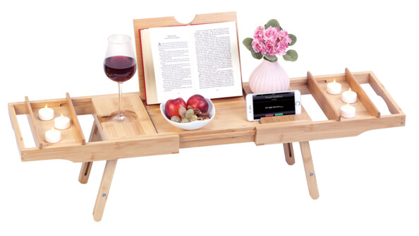 Étirez le pont en fonction de la largeur de votre baignoire : vous pouvez l'étendre en continu de 75 cm à 109 cm. Vous pouvez également déplier les pieds pour transformer le pont en plateau repas, idéal pour prendre votre petit déjeuner au lit ou travailler sur votre ordinateur sans avoir à vous lever.