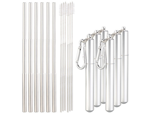 - 6 pailles télescopiques en acier inoxydable avec goupillons et étuis par Rosenstein & Söhne