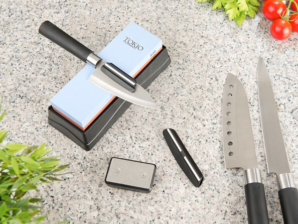 - Lot de 2 pierres à aiguiser à double face avec 4 accessoires, par Tokio KitchenWare