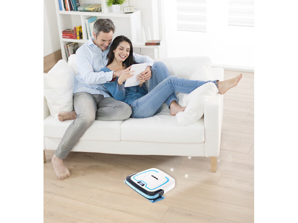 Le robot nettoyeur PCR-1300 de Sichler lave votre carrelage, parquet ou sol en pierre à sec ou à l'eau, selon vos besoins.