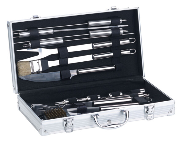 - 14 ustensiles à barbecue dans un coffret en aluminium, par Rosenstein & Söhne