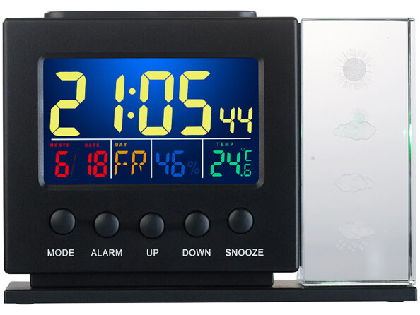 L'écran LCD couleur vous indique en outre l'heure, la date et le jour de la semaine, ainsi que la température et l'humidité ambiantes. Vous êtes ainsi parfaitement informé des tendances météo et pouvez vous équiper en conséquence.