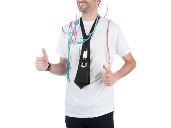 Atout supplémentaire : vous dégustez votre boisson préférée bien fraîche plus longtemps grâce à son matériau isolant, la cravate garde la bouteille au frais pendant des heures et votre chemise, derrière la cravate, est protégée de l'humidité. Équipez-vous vite avant le prochain barbecue, carnaval, enterrement de vie de garçon ou festival !