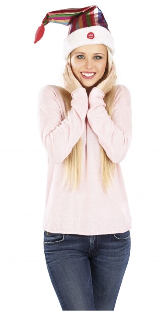 Ce bonnet bariolé chante une petite chanson en l'honneur de la personne du jour. Et il se dandine en suivant le rythme de la chanson.