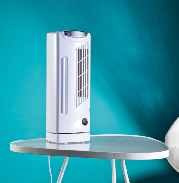 Posez le ventilateur sur une table et profitez d'une brise rafraîchissante, chez vous ou au bureau. Choisissez un des 3 niveaux de vitesse pour un rafraîchissement optimal ! Grâce à la fonction oscillation, l'air est réparti dans toute la pièce sur 90°. Et comme il est très silencieux, ce ventilateur fonctionne sans vous déranger dans votre travail ou vos moments de détente. Compact, avec poignée de transport, ce ventilateur se transporte facilement. Et avec son format colonne, il trouve sa place n'importe où sans vous encombrer.