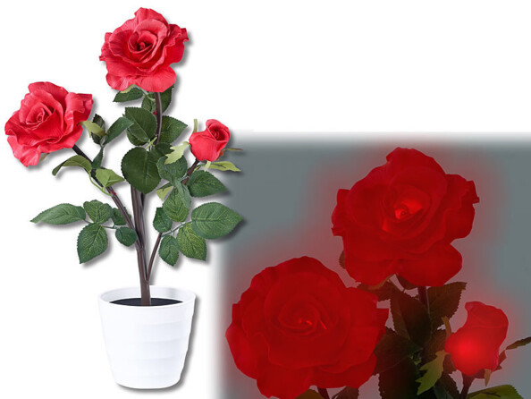 - Rosier à LED avec vase et fleurs rouges