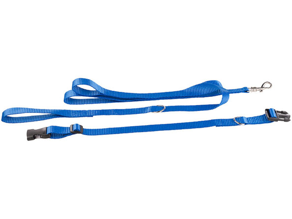 Tout pour la promenade du chien au quotidien : collier, laisse classique, laisse d'entraînement, et housse réfléchissante pour plus de sécurité, avec un sac de récupération intégré et pratique pour les sachets à déjections.