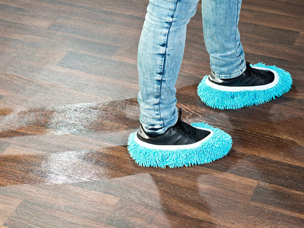 Atout supplémentaire : vous pouvez l'enfiler directement sur vos chaussures et l'utiliser comme patin. Un truc de grand-mère …. pour un parquet toujours impeccable !