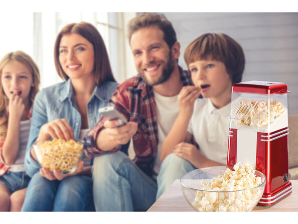 Avec la machine à pop-corn à air chaud design rétro de Rosenstein & Söhne, vous transformez vos soirées films en véritable expérience cinéma ! Redécouvrez le plaisir de voir des films en bande avec un délicieux pop-corn croustillant.