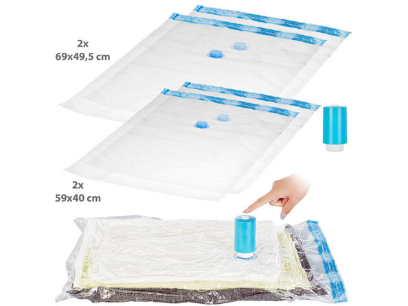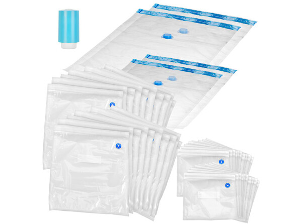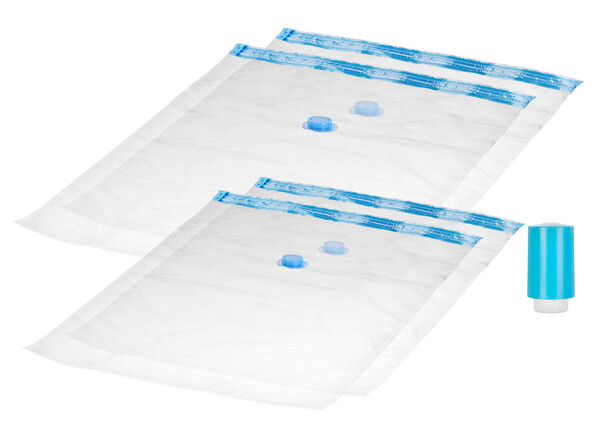 - 44 sacs sous vide en quatre tailles: 2 sacs 69 x 49,5 cm, 2 sacs 59 x 40 cm, 20 sacs 34 x 30 cm, 20 sacs 22 x 21 cm