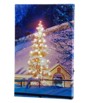 Le tableau à LED et fibres lumineuses "Sapin sous la neige" représente un sapin enneigé et totalement illuminé, se dressant avec majesté devant un paysage de montagne. Une ambiance hivernale de Noël comme on en rêve souvent.