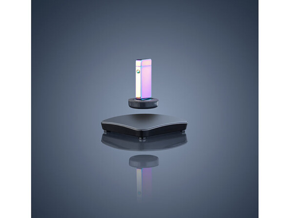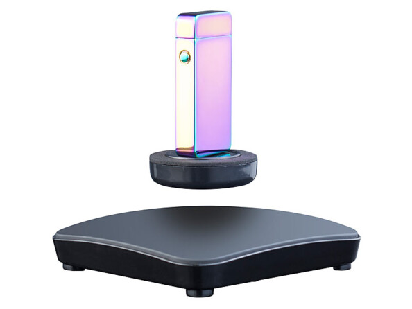 Le secret : un puissant système magnétiques permet de maintenir le plateau de présentation quelques centimètres au-dessus de la base. Il semble flotter en l'air comme par magie !