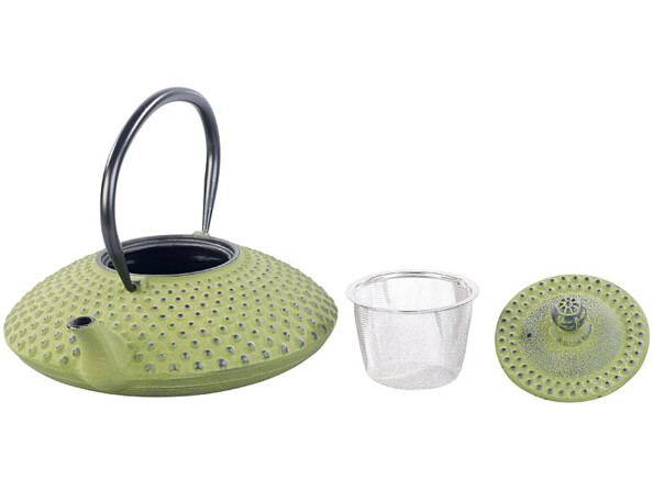 - Composition : extérieur en fonte, intérieur émaillé, passe-thé intégré en acier inoxydable