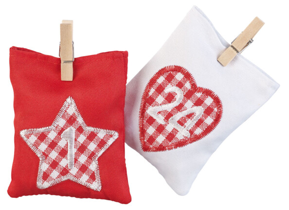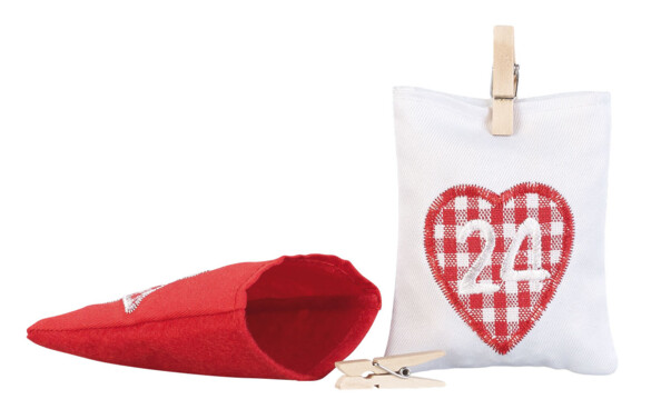 - 24 petits sachets avec 3 motifs différents alternés : étoile, sapin et cœur
