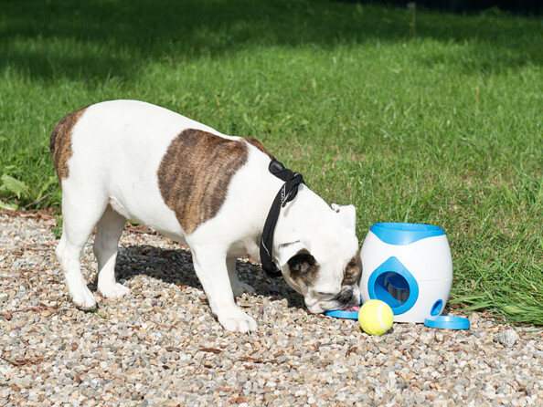 Cet amusant jeu de stratégie occupe intelligemment votre compagnon à quatre pattes, tout en stimulant sa vivacité d'esprit ! Appuyez-vous sur le principe naturel de la récompense : votre chien résout un problème et reçoit une récompense : il s'amuse ainsi et se nourrit de lui-même par petites portions.