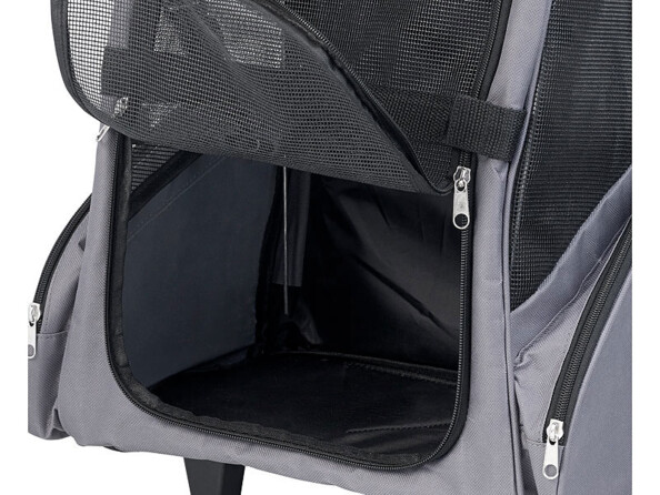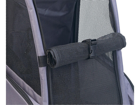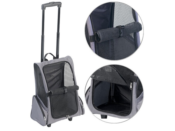 Mais son atout majeur, c'est sa modularité : il peut être transporté aussi bien comme un sac à dos que comme une valise à roulettes. Cette fonction trolley, avec poignée télescopique comme il se doit, vous permet de transporter votre animal sans effort et sans vous fatiguer inutilement.