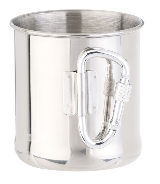 Pratique à transporter : la poignée est en même temps un mousqueton pliable. Ainsi, vous pouvez porter la tasse confortablement sur votre ceinture, pantalon ou dans votre sac à dos.