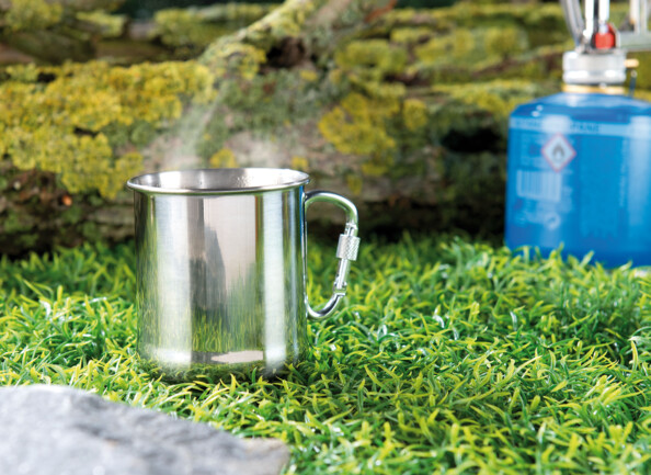 Qu'il s'agisse de camping, de randonnées ou de festival, le mug avec mousqueton vous offre de précieux services. Prenez de l'eau ou profitez du café du matin sur le réchaud de camping.