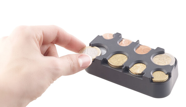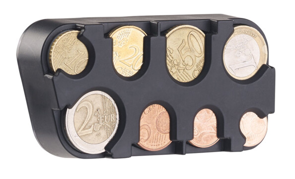 - Capacité jusqu'à 23,44 € : 6 x 2/1/0,5/0,2/0,1 € chacun et 8 x 5/2/1 centimes chacun