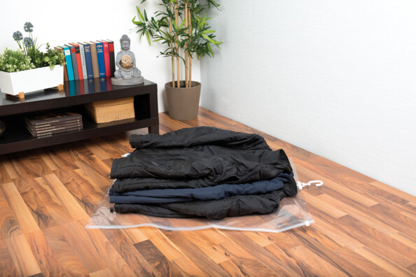 Glissez vos affaires dans les sacs de mise sous vide, videz-en l'air, et voici vos vêtements protégés jusqu'à leur prochaine utilisation. C'est pratique pour ranger les combinaisons de ski ou couettes en attendant l'hiver ! Vous gagnez de la place, et protégez vos affaires des éventuels insectes nuisibles (acariens, mites…) mais également de l'humidité, de la moisissure et des odeurs.