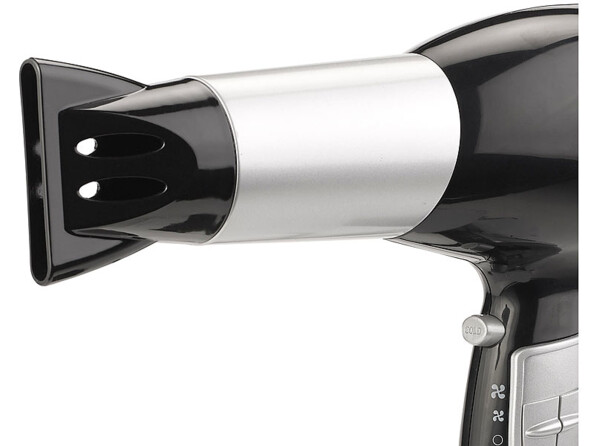 Ce sèche-cheveux vous permet de choisir entre 2 niveaux de vitesse pour le flux d'air et 3 niveaux pour la température. Dès la sortie de la douche, retrouvez des cheveux parfaitement secs très rapidement. L'atout de ce sèche-cheveux : il ionise l'air soufflé afin d'éviter le chargement statique des cheveux. Pour des cheveux plus brillants, plus faciles à coiffer et qui ne s'envolent pas au contact d'un pull ou bonnet en matière synthétique.
