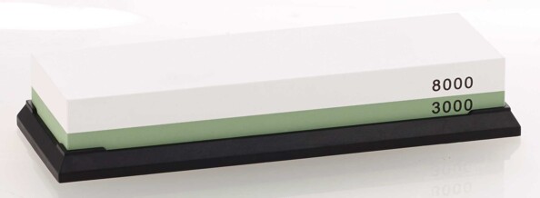 Utilisez la partie non polie de grain 3000 pour rendre vos couteaux à nouveau coupants (étape dite du Dégrossissage), puis passez sur la face de grain 8000 pour les finitions (ou affinage). Même les meilleurs couteaux ont un jour besoin d‘être affûté. Et pour cela, les pierres à eau sont les plus performantes.