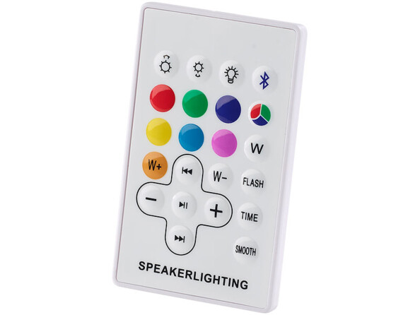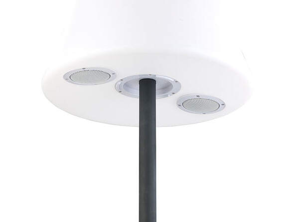 Grâce aux haut-parleurs sans fil intégrés, elle diffuse la musique de votre choix en bluetooth à partir d'un appareil mobile. Pour une ambiance romantique ou pour faire danser vos invités, il n'y a plus qu'à choisir la playlist adaptée. Pour que l'ambiance soit parfaite, adaptez également la couleur à l'atmosphère recherchée : blanc pour éclairer le diner, bleu foncé pour un éclairage feutré, ou encore jaune, violet ou rouge selon vos envies. Et lorsque vous activez le changement de couleur automatique, les couleurs changent au rythme de la musique ! Le tout se pilote facilement depuis la télécommande fournie.