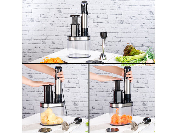 - Mixeur plongeur et coupe-légumes à spirale électrique 2 en 1