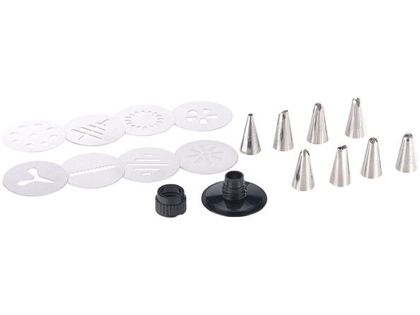Avec 8 disques à biscuits et 8 douilles différentes, donnez vie à toutes vos idées de gourmandise ! Les 8 douilles de formes et tailles variées vous permettent de réaliser des décorations raffinées sur vos pâtisseries, mais aussi de les garnir de mousse ou de crème.