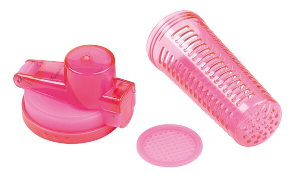 - Composition : polyester (gourde), ABS, AS et PP (couvercle et filtre)