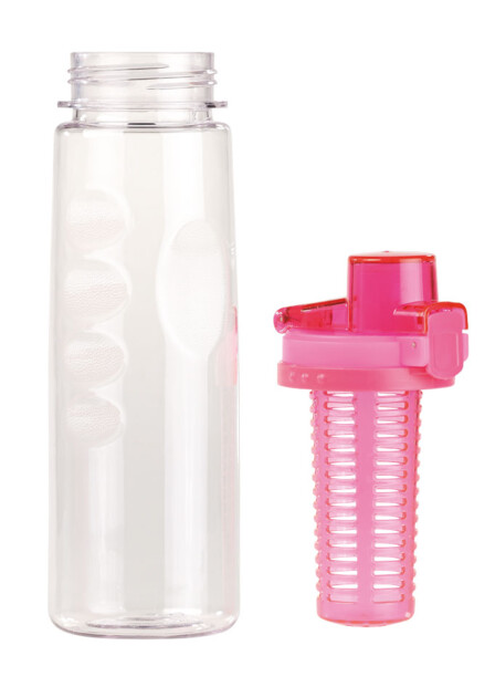 - Gourde avec compartiment pour fruits, bouchon, filtre pour boisson, dragonne
