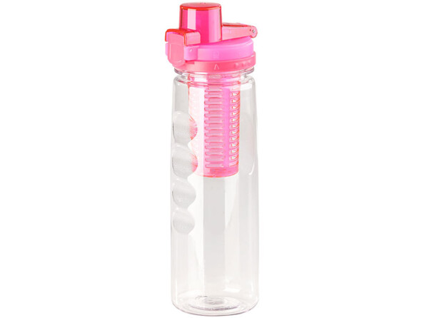 Versez vos fruits, vos herbes et votre eau dans une gourde chic sans bisphénol A, et le tour est joué ! Idéal lors de vos déplacements : grâce à la fermeture sécurisée et au joint en silicone, la gourde garde votre boisson de manière parfaitement étanche. Vos livres, cartes et autres documents importants restent ainsi protégés ! Partez randonner en toute quiétude, et désaltérez-vous avec une savoureuse boisson 100 % saine.