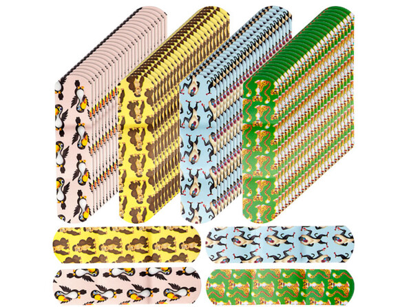 - 4 motifs animaux colorés : 25 x gorille, 25 x léopard, 25 x babouin et 25 x toucan