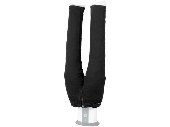 Il suffit de tirer le pantalon sur l'accessoire, de fixer l'accessoire à la base de votre mannequin et d'allumer la soufflerie. Le reste se fait tout seul. Même les jeans épais sont secs en 30 minutes à peine ! Compactet peu encombrant, après utilisation, il suffit de replier sèche-pantalon.