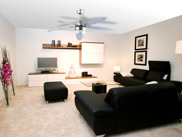 Enfin, le ventilateur VT-997 de Sichler possède un plafonnier à activation indépendante des pales. Vous pouvez donc vous servir de votre ventilateur comme de lampe de salon à tout moment. Son diffuseur rond en verre mat permet une excellente répartition de la lumière dans la pièce, même avec une seule ampoule !