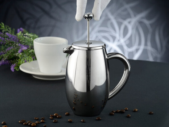 Il suffit de placer du café moulu (ou du thé) dans le pichet, de verser de l'eau chaude puis, après quelques instants, de presser le filtre intégré vers le bas. Le pichet à double paroi, en acier inoxydable, maintient le café chaud longtemps, pour que vous preniez le temps de le déguster, sans devoir vous dépêcher avant qu'il refroidisse !