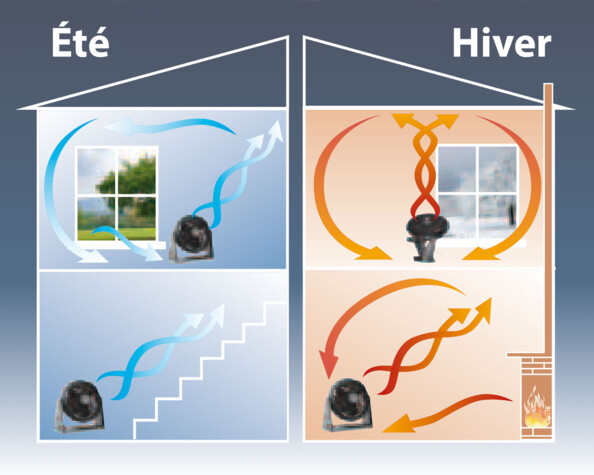 Une fraîcheur agréable en été et une répartition idéale de la chaleuren hiver : grâce à la technologie innovante pour la circulation de l'air et à 3 niveaux de vitesse, le ventilateur diffuse l'air de façon homogène dans toute la pièce. L'atmosphère est ainsi aussi agréable toute l'année, quelle que soit la saison.