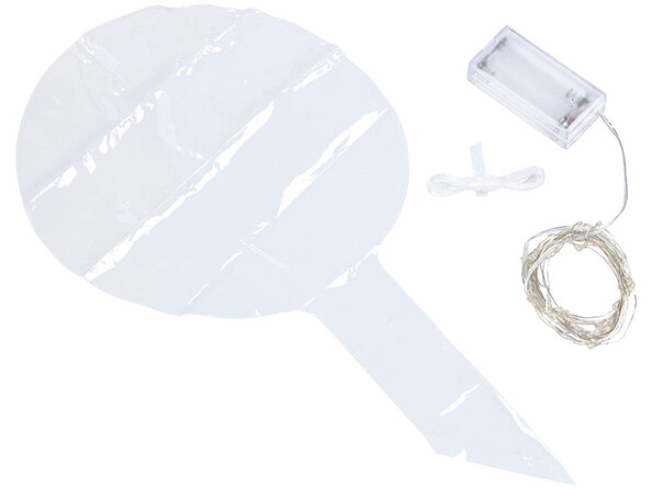 - Dimensions ballon : Ø env. 20 cm, guirlande : 4 m, poids total (sans piles) : 29 g