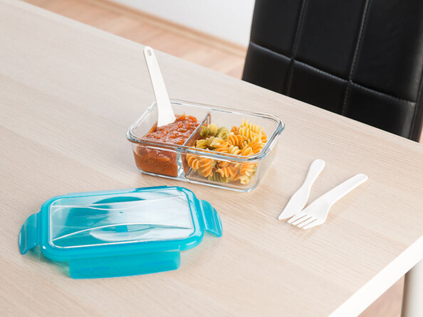 - Boîtes de conservation avec couvercles à enclencher et couverts