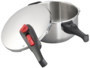 Différents dispositifs de sécurité : vous verrouillez et déverrouillez le couvercle à l'aide d'une seule commande coulissante et d'un mouvement de rotation. La surpression s'échappe du régulateur ou de la soupape de sécurité de manière contrôlée. L'anneau d'étanchéité et les cavités sur le bord de la casserole garantissent une sortie de vapeur sûre maîtrisée.