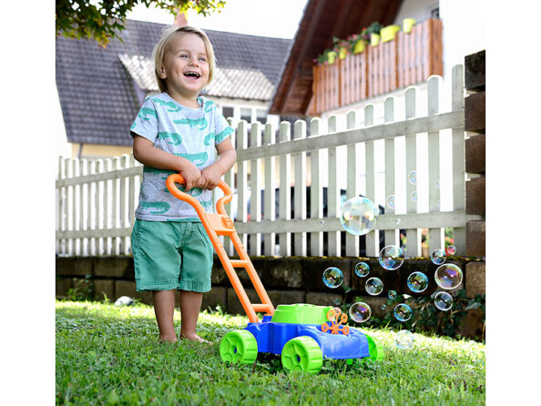 - Deux fois plus d'amusement : poussez la machine sur la pelouse tout en faisant des bulles