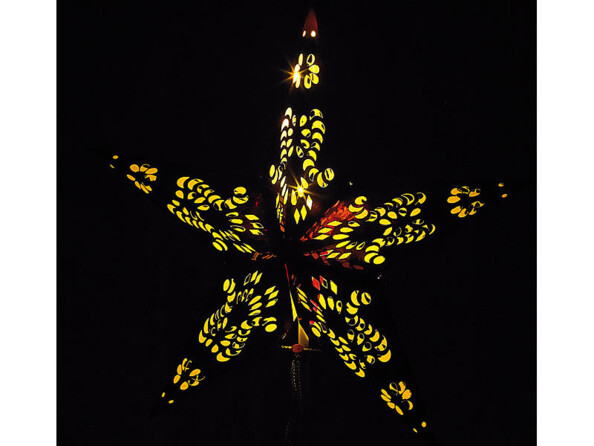 Grâce aux motifs découpés dans le carton rigide, cette étoile diffusera la lumière d’une façon originale et créera de jolis effets lumineux.