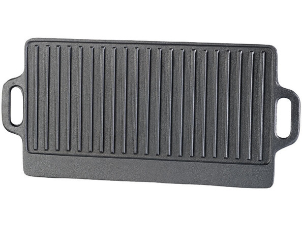 Pourvues de deux côtés différents, les plaques sont parfaitement polyvalentes : le côté avec des rainures est parfait pour frire viande et légumes, le côté plat accueille vos œufs au plat, crêpes et pizzas.