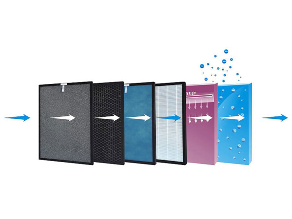 - Purificateur d'air LR-600 à 6 niveaux avec 4 filtres plus 2 filtres (2 en 1) de rechange par Sichler