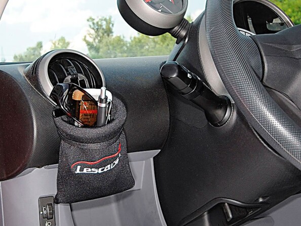 Les airbags des voitures modernes ne laissent souvent que peu de place pour des espaces de rangement; résultat: briquet, stylo et lunettes de soleil se déplacent à chaque virage. Smart Pocket est alors la solution qui s’impose. Ce petit sac se fixe en un tour de main à une grille de ventilation ou derrière l’appuie-tête pour vos passagers arrières.