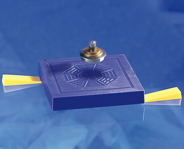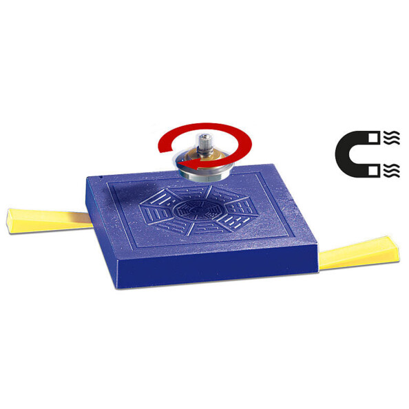 Le gyroscope tient en l'air grâce à l'annulation de la force gravitationnelle par la force magnétique (sans avoir besoin d'un quelconque adaptateur secteur ou piles). Des petits poids vous permettent d'équilibrer au mieux le gyroscope, pour un effet visuel parfait.