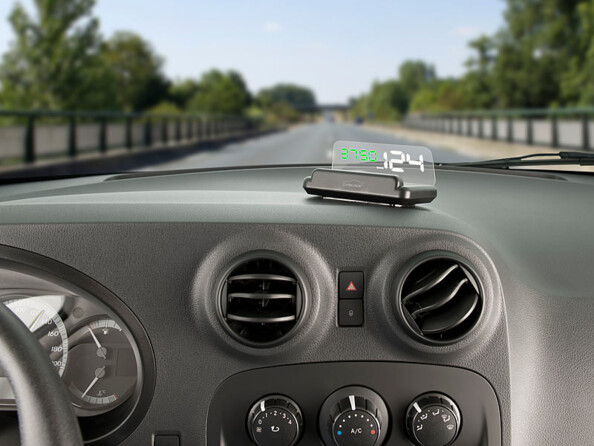 Votre nouvel écran tête haute projette les données sur le pare-brise, dans le champ de vision. Ainsi, vous pouvez facilement garder un œil sur la route, mais aussi sur la vitesse, le nombre de tours, la consommation de carburant et d'autres informations. C'est vous qui décidez quelles données doivent être affichées, seulement la vitesse ou la consommation de carburant par exemple. Si vous le souhaitez, vous pouvez aussi afficher toutes les valeurs pertinentes en même temps.