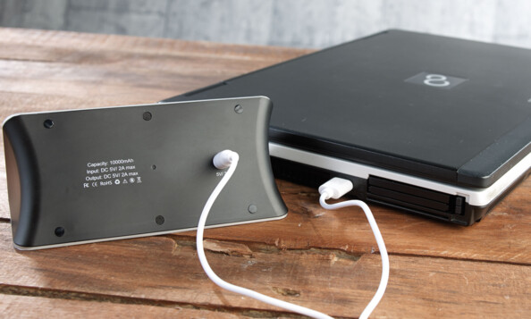 - Porte-affiche avec batterie intégrée PB-104.t livrée avec un câble de chargement USB